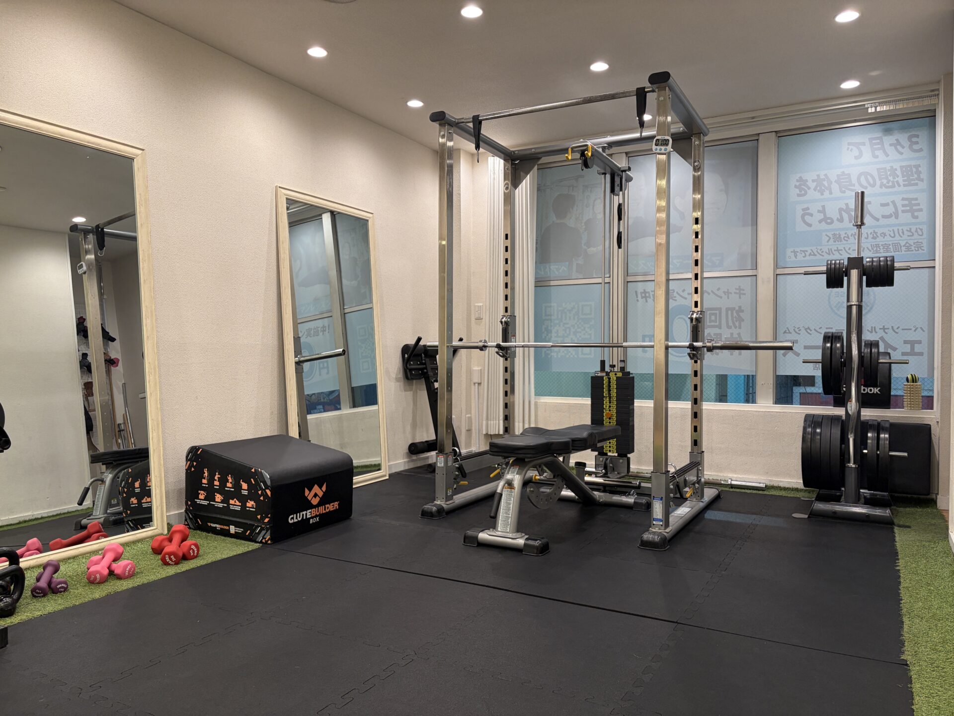 プライベート空間だから、誰の目を気にすることもなく、思いっきりトレーニングに集中できます。「普通のジムでは、視線が気なる...」という女性の方もご安心ください。